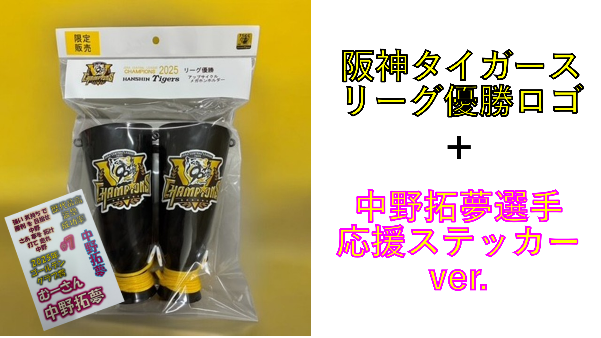阪神タイガースの勝利を共に祝うこのメガホンホルダーで、応援の楽しみ方を広げてみませんか。ご不明点やご質問がある場合は、ショップのお問い合わせからお気軽にお知らせください。